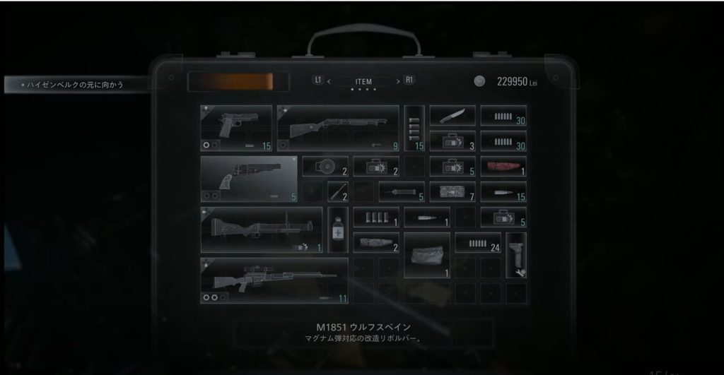 アイテムの持ち方は、バイオ7ではバイオ1、2、3と同じような感じでアイテムマネージメントが必要ですが、バイオ8ではアイテムボックスがなくなり、バイオ4と同じようなアタッシュケース型が採用されております。